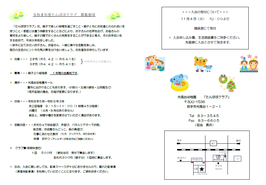 令和8年度 未就園児 たんぽぽクラブ 募集要項配布中