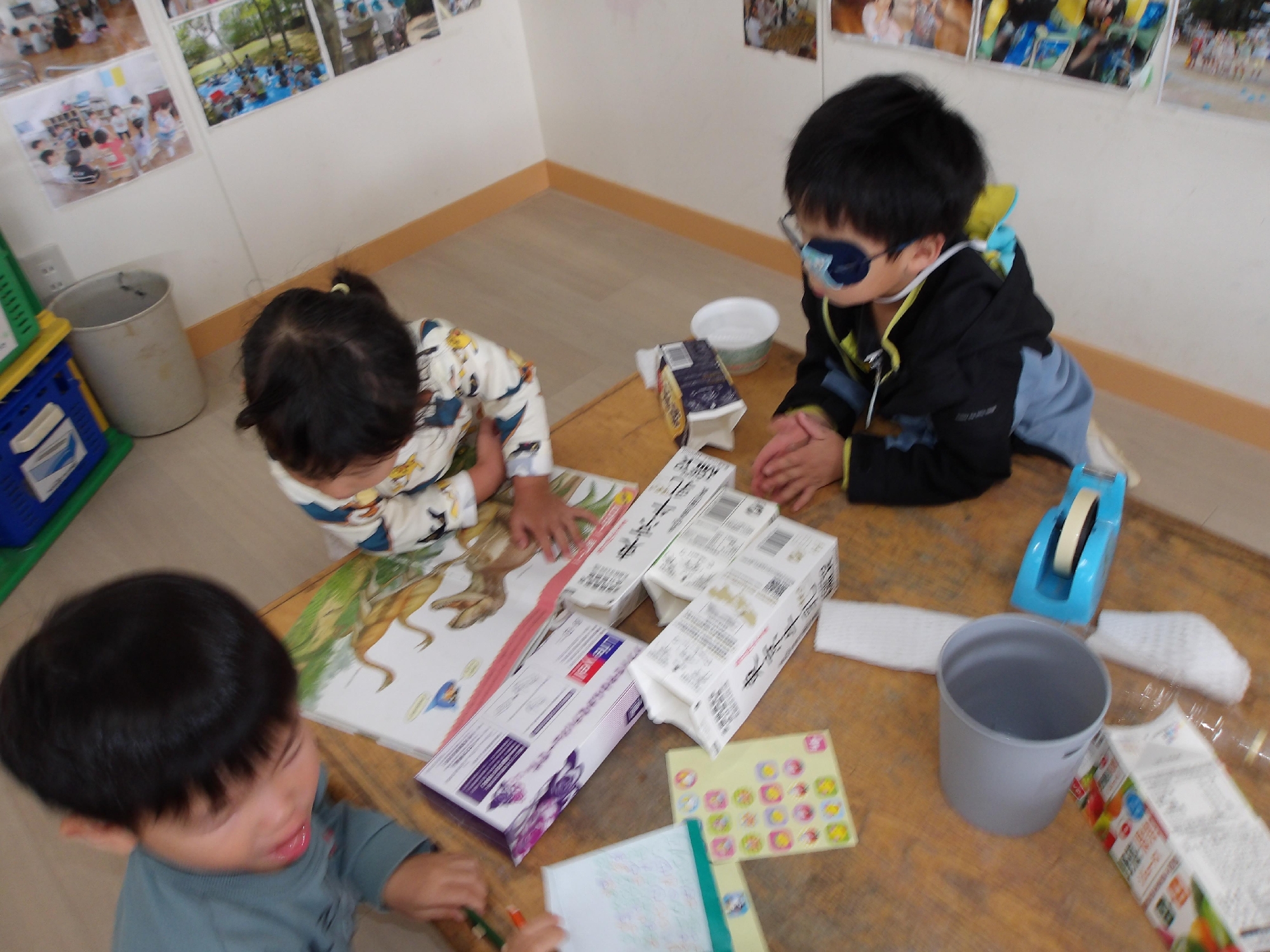 絵本を見ながら箱で恐竜を作ってみよう!!「何の恐竜にしようかな?」