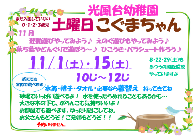 - 11月1日・15日(土)「★土曜日こぐまちゃんであそぼう★」