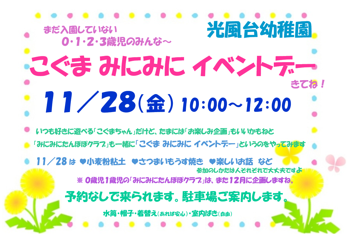 まだ入園していない、0・1・2・3歳のお友だち遊びに来てね!!