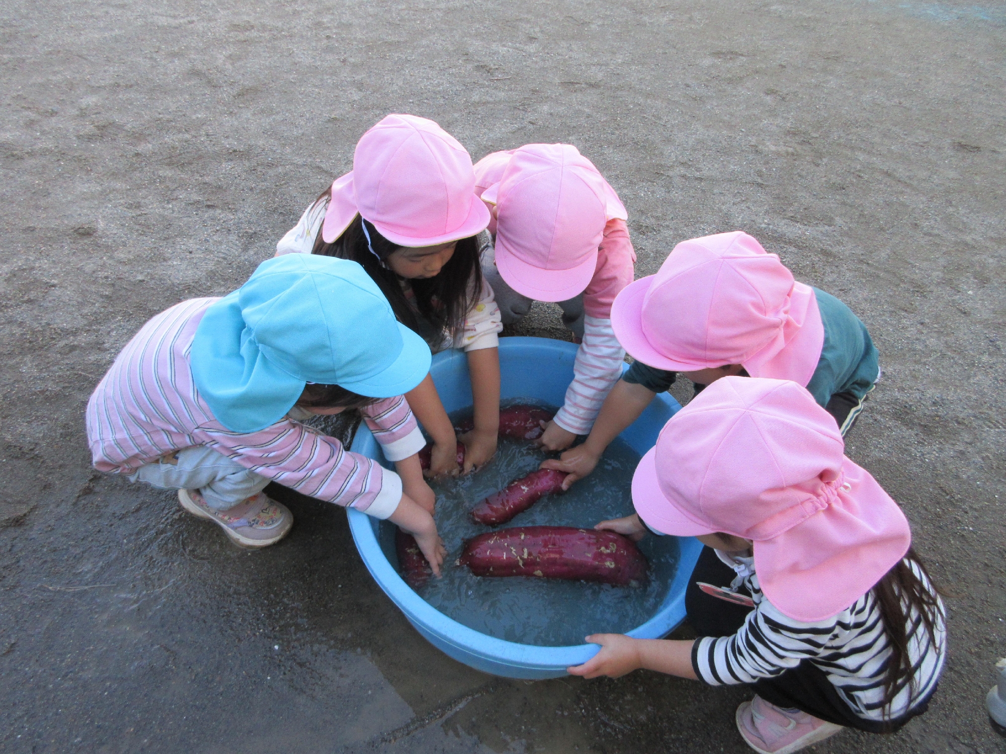美味しく食べられるようにみんなでワイワイと洗っていましたよ(^^)