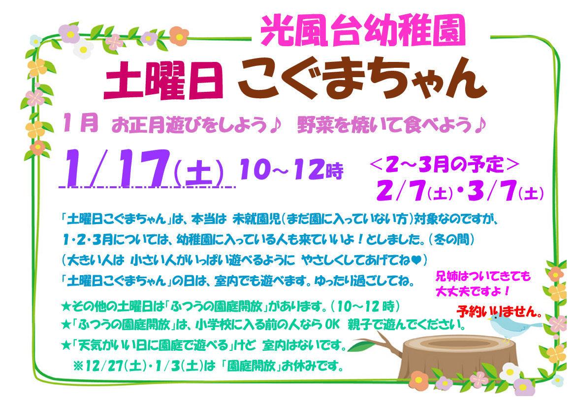 - 1月17日(土)「★土曜日こぐまちゃんであそぼう★」