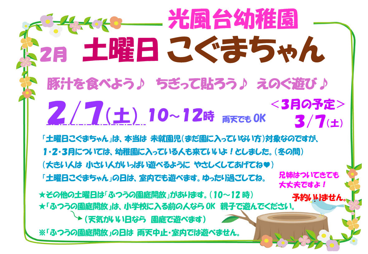 - 2月7日(土)「★土曜日こぐまちゃんであそぼう★」