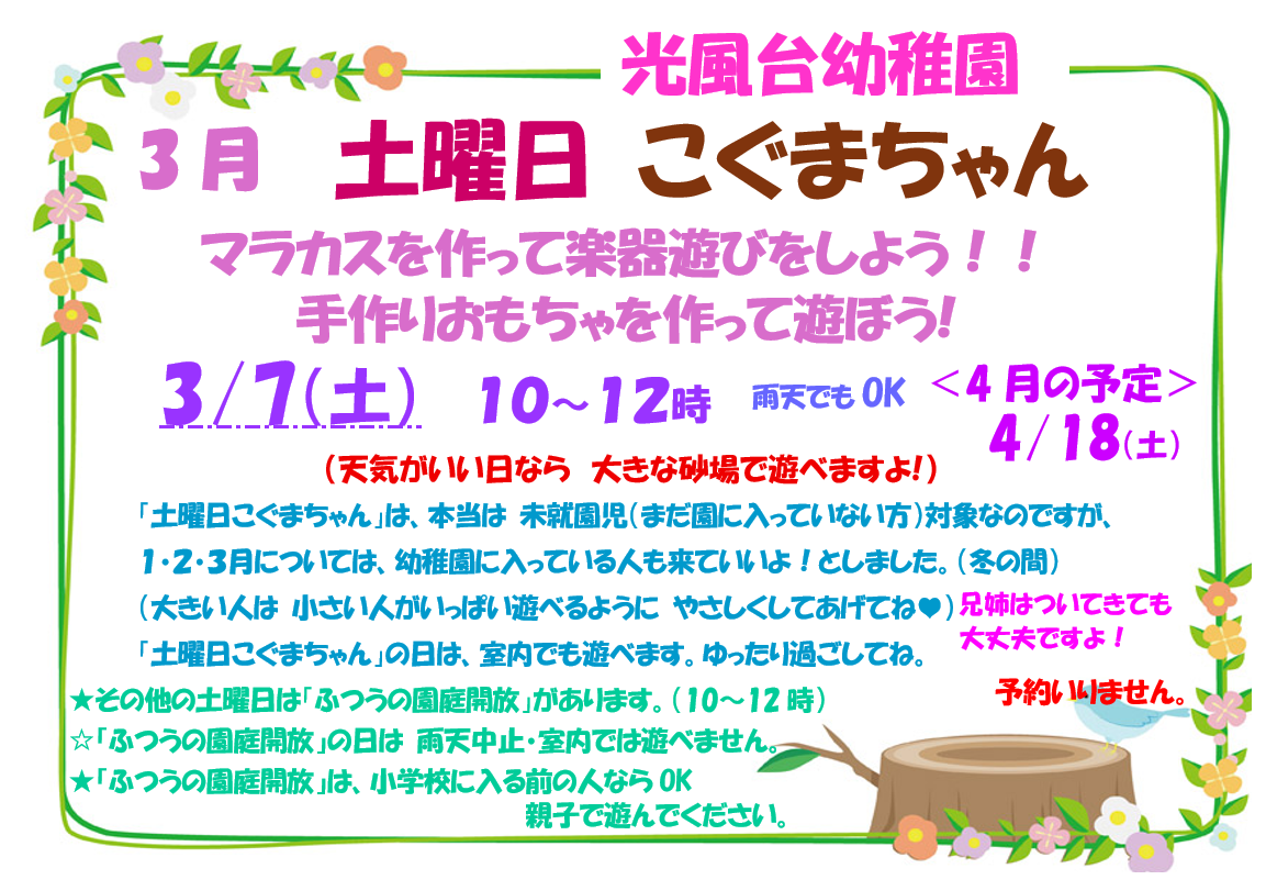 - 3月7日(土)「★土曜日こぐまちゃんであそぼう★」