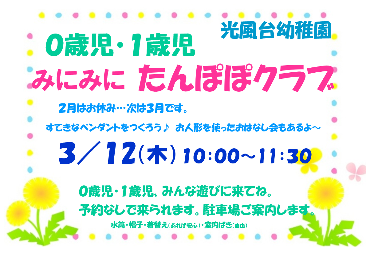 まだ入園していない、0・1・2・3歳のお友だち遊びに来てね!!
